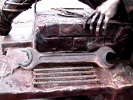Интересно, что у Емели также имеется столь необходимый в любом путешествии гаечный ключ. При этом он не бутафорский, а вполне себе настоящий - его специально для этой скульптуры подарил Новоселову его друг из Петербурга.