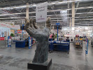 Если зайти внутрь гипермаркета, то там находится еще один креативный арт-объект - рука с табличкой, приглашающей за покупками.