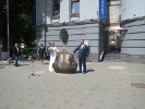 Сложилось поверье, что если потереть замочек на кошельке, то материальное благополучие обеспечено. Особенно усиленно это делают молодожены - рядом с "кошельком" расположено здание ЗАГСа.