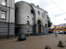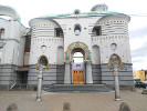 А вот само здание банка (это и есть дом 7 по Малой Покровской) само по себе очень примечательно. Оно было построено в 1995 году по проекту Е.Н.Пестова и А.Е.Харитонова. Оно создано по древне-русским мотивам, нижегородцы зовут этот дом сундучком, а кто-то ассоциирует его со сказочными домиками из историй братьев Гримм. Авторы получили за него Государственную премию, а само здание стало одной из визитных карточек Нижнего Новгорода.