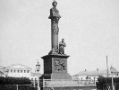 В 1851 году по высочайшему указу императора Николая I на месте, где сейчас "гвоздь", был установлен тот самый памятник Романову и Сусанину. Естественно, после революции 1917 года он был разрушен (негоже крестьянину стоять коленопреклоненным под царем). Осталась только платформа, вокруг которой соорудили трибуну. Но это деревянное строение со временем начало разрушаться, и все остатки памятника демонтировали и закопали прямо на площади. Каким-то чудом уцелела гранитная колонна, которую перенесли в костромской кремль.