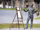 На берегу Волхова, на противоположном берегу от Кремля в Великом Новгороде сидит "юный художник". Скульптура была установлена в сентябре 2010 года, ее автор - новгородский скульптор Сергей Гаев.