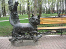 Вообще, Раменское - город сказочный. Здесь установлено множество бронзовых героев наших суазок и мультфильмов - "Ну, погоди!", "Простоквашино", "Чебурашка", "Винни-Пух", "Буратино", "Львенек и Черепаха". Автор всех их - Олег Ершов. Ему же некоторые по незнанию приписывают авторство и "Кота ученого". Но на самом деле "Кота" сотворил другой местный художник-скульптор - Михаил Пучков.