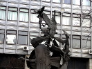 На улице Горбунова в Москве находится интересная композиция под названием "Полет" - несколько журавлей как будто сплелись в полете в единое целое. Расположена она на территории Всесоюзного института легких сплавов (ВИЛС). Естественно, для того чтобы ее увидеть - нужен пропуск. Поскольку у меня такового не оказалось, то пришлось снимать из-за забора.