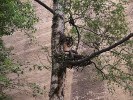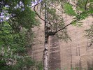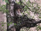Рядом с двойником Чижика-Пыжика в том же дворе на одном из деревьев сидит то ли Буратино, то ли лесовик, то ли домовенок. Заметить его в листве дерева совсем уж непросто.