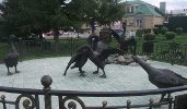 Памятник Павловскому кузнецу не единственный на нижегородской земле. Практически идентичный памятник кузнецу установлен в Выксе. А кроме кузнеца в Павлово есть и другие памятники, изготовленные с применением кузнечного ремесла - Павловский лимон и "Гусиные бои" (на фото).