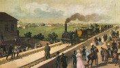 30 октября 1837 года в 12.45 от платформы Царскосельского вокзала (теперь он называется Витебским) в Царское Село отправился первый поезд. Управлял им лично Герстнер. Протяженность первой "железки" составляла 27 километров. Поезд преодолевал это расстояние за полчаса, развивая скорость в среднем более 50км/ч - фантастика по тем временам. Интересно, что в первые полгода эксплуатации "под парами" поезд следовал только по выходным, а в будни в вагоны впрягали лошадей.