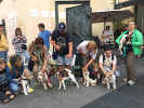Последней появилась плоская металлическая собачка (ее добавил Вячеслав Бухаев), как отсыл к любимой собаке Довлатова - фокстерьеру Глаше. Это случилось в 2021 году, когда отмечался 80-летний юбилей писателя. Но еще раньше сложилась традиция отмечать день рождения литератора парадом фокстерьеров.