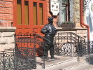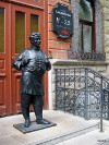 Около дома 94 на челябинской Кировке стоит упитанный, услужливый и лоснящийся трактирщик, зазывающий посетителей в кафе (еще его называют "Приказчик").