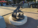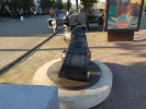 В одном из источников я встретил такое описание этого памятника: "выглядит он как макет видеокамеры, закрепленный на волнах киноленты". Но позвольте - какая кинолента у телекамеры? Действительно, когда-то телекамеры делали запись на ленту, но только на магнитную! А здесь имено кинолента - с кадрами и перфорацией. С другой стороны, какие еще кадры у магнитной ленты? Их у нее нет! Но отставить брюзжание - скульптура классная.