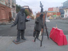Рядом со скульптурой "Левша" на пешеходной улице Кирова в Челябинске (она же "челябинский Арбат" или попросту "Кировка") стоит художник и увлеченно пишет свою картину.