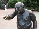 Что касается Евгения Леонова, то я знаю еще пару скульптур, где он изображен в образе его героев: в роли штукатура Коли на памятнике героям фильма "Афоня" в Ярославле, и в роли ветерана войны Волохова из фильма "Мимино" в Москве.