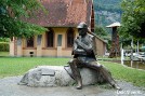 Как это ни странно, первый памятник Холмсу был установлен не в Великобритании, а в Швейцарии - в городке Мейринген, что неподалеку от того самого Рейхенбахского водопада. Кстати, роль этого водопада в нашем фильме сыграл Гегский водопадад в Абхазии.