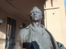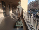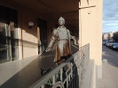 Специально этот памятник я не искал, а увидел случайно, гуляя по Нижнему Новгороду и свернув с Большой Покровской на Октябрьскую. И даже не сразу понял, что это скульптура - кажется, что просто человек стоит на колоннаде дома.
