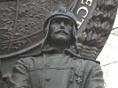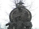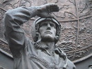 Во многих источниках говорится, что время Великой Отечественной войны на памятнике символизирует самолет Ил-4. Действительно, этот самолет является дальним бомбардировщиком. Но он имел 2 двигателя, а на памятнике изображен 4-двигательный самолет. Так что на самом деле это другой дальний бомбардировщик - Пе-8.