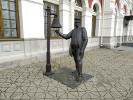 Ну и центральная композиция на площади - "пассажиры". Здесь уже разыгрывается целая ролевая сцена: мамаша после первого сигнала "начальника станции" схватила за руку упирающегося сынишку и ринулась на посадку. Следующий за ними папаша не поспевает, согнувшись под тяжестью детскаго велосипеда и тяжеленного чемодана (да-да, раньше чемодан надо было нести, а не катить на колесиках). А позади их на чемодане возлежит еще одна дамочка - то ли отправляется не ее поезд, то ли она по наивности полагает, что времени много и она еще успеет.