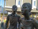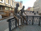 "Влюбленные" сидят на парапете и беседуют о чем-то возвышенном. Говорят, что у них есть реальные прототипы - студенты архитектурно-художественной академии Александр и Анна. Место для этой композиции выбрали символичное: когда-то по адресу Вайнера, 13 располагался ЗАГС. Но во время реконструкции улицы в пешеходную его перенесли в другое место.