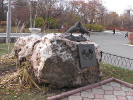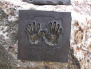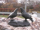 Композиция состоит из двух частей - пары воркующих голубей и бронзовой плиты с отпечатками мужской и женской ладоней. Ее официальные названия - "Любовь, мир и согласие" или "Памятник первому свиданию".