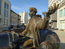 Уже после первой части реконструкции на ней стали появляться разные скульптуры. Ну а какой памятник должен стоять у банка (нынешний адрес здания Русско-Азиатского банка - Вайнера 24)? Естественно, памятник банкиру, который и появился в 2006 году. Выглядит он вполне импозантно: костюм-тройка, сюртук, и, естественно, шляпа-цилиндр и трость.