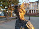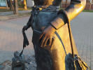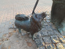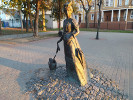 Памятник получился: кружевной зонтик, изящная шляпка, книга в руке, одна шлейка для собачки чего стоит. Да и сам шпиц, преданно смотрящий на хозяйку, готов бежать за ней куда угодно.