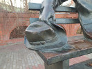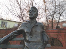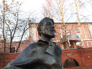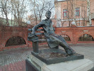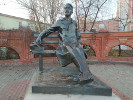 Но с ним связана почти детективная история. Раньше в Серпухове был другой памятник писателю, появившийся в начале 1970-х годов. О том памятнике сведений еще меньше - я даже имен авторов не смог найти. На нем Антон Павлович был постарше, имел пенсне, и сидел на театральном табурете, установленном на довольно высоким постаменте.