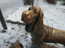 Возникла проблема с внешностью Бобки. Было только описание Колгушкина: "большая, мохнатая, рыжая собака из породы волкодавов". Поэтому решили обратиться к детям - объявили конкурс детского творчества "Собака Бобка- символ милосердия", в котором приняли участие более 350 ребят. Не знаю, руководствовался ли автор бронзового пса, скульптор Александр Еремин, результатами конкурса, но что получилось, то получилось - волкодав превратился в бассет-хаунда.