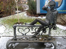 В сентябре 2007 года в старинном здании на улице Щепкина в Курске был открыт торговый центр "Манеж". А в 2010 году около входа в ТЦ появились две скульптурные композиции - "Губернаторская карета" и "Поручик Ржевский". Бравый поручик сидит на спинке скамейки и крутит свой залихватский ус. А рядом, склонив голову, стоит его верный конь. Может быть поэтому куряне называют его еще "Проигравшийся гусар" или "Влюбленный гусар". Автор обеих композиций - знаменитый белорусский скульптор Владимир Жбанов (О нем и его работах я писал на странице памятник Барону Мюнхгаузену в Минске).