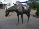 Сначала в 2002 году он создал лошадь. Она установлена в Минске - см. страницу "Лошадь и воробей". Но на самом деле были сделаны 3 лошади. Доказательством, что отливали их одновременно, служит клеймо на каждой из них - "2002". Смею это утвержать потому, что я видел всех их воочию. Отличием второго и третьего экземпляров является отсутствие на них воробья. Вторая лошадь была установлена в Барановичах, а вот третья "ускакала" в Курск в качестве верного друга Ржевского. Где она провела 8 лет до своей установки - мне неизвестно.