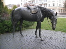 Что касается самого поручика, то Жбанов создал его позже лошади - в 2006 году. Причем Ржевский был отлит тоже в трех экземплярах! Первый, как и планировал скульптор, был установлен в украинском Павлограде. В Курске установлен второй Ржевский, а вот третий с 2012 года "прописан" в подмосковном Долгопрудном (см. страницу про эту скульптуру).