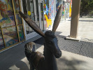 Судя по натертому седлу (честно говоря, не помню - а было ли седло у настоящего Горбунка?), детвора норовит оседлать скульптуру. Видимо, опасаясь за его сохранность, организаторы решили изготовить второго конька и установить его так, чтобы невозможно было бы до него добраться. Так появился Конек-Горбунок на Цветном бульваре.