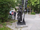 На перекрестке улиц Профсоюзной и Володарского в Тюмени стоит колоритный дворник. Это бородатый мужичок в картузе, в сапогах и жилетке. Причем это вся его одежда - руки и ноги его выполнены в виде каркаса их металлических прутьев. На жилетке красуется жетон с цифрами 72 (это номер Тюменской области в списке российских регионов), а фартук сплошь соткан из заплат - видимо, много повидал на своем веку. Ну и, естественно, рукавицы и непременная дворницкая метла.