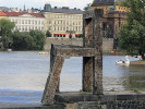 На шлюзе Влтавы в Праге установлен примечательный "стул": довольно большая конструкция укреплена прямо на парапете шлюза. При этом одна его ножка чуть длиннее других, и чуть выставлена вперед - как будто "стул" пытается одной "ногой" шагнуть вниз по ступеньке.