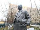 Это ростовая фигура самого Туполева, идущего по невысокому треугольному постаменту с рулоном чертежей под мышкой. Сзади взметнулась ввысь контурная модель сверхзвуеового пассажирского самолета Ту-144, судьба которого оказалась значительно короче его европейского аналога - знаменитого Конкорда.
