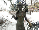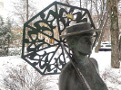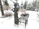По мнению многих самые замечательные виды в Самаре открываются со смотровой площадки Пушкинского сквера. Совсем рядом с ней есть неприметная скульптура - дама в одеянии конца XIX века и с теннисной ракеткой стоит рядом с винтажной скамейкой-креслом.