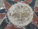 Далее от центра - еще один круг, оканчивающийся металлической полосой, на которой выбиты 3 изречения о времени: "Время - ткань, из которой состоит жизнь", "Время - движущееся подобие вечности", "Все настоящее - мгновение вечности". Что бы это значило?
