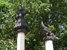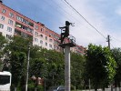 У кого родилась идея таким образом обозначить пешеходный переход и привлечь внимание водителей - не знаю. Но побольше бы таких креативных идей! Может быть и аварийность на наших дорогах снизится. Единстственный, на мой взгляд, недостаток: фигуры расположены на столбах и довольно высоко - не все наши водители смотрят вверх, подъезжая к перекрестку.
