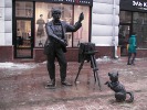 Как и многие скульптуры на Большой Покровской, этот памятник имеет своего челябинского "прототипа". Пусть не самого фотографа, а его собачки. Но и памятник фотографу в Челябинске тоже есть - см. фотогалерею.