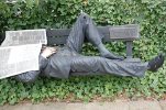 В парке Либерти-плаза в Нью-Йорке, на лавочке, среди многочисленных клерков, вышедших перекусить в обеденный перерыв из одного из окружающих офисов (все-таки Уолл-стрит в нескольких минутах ходьбы!), скромно сидит точно такой же клерк (или менеджер), только бронзовый.