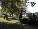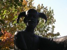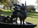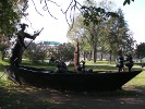 Многие удивляются этой скульптуре: мол, что это за уродцы вместо зайцев? Зачем так издеваться над творением Некрасова? Но я думаю, что это некий шарж, шутка или пародия. В самом деле - зайцы здесь не только не выглядят мокрыми и трясущимися, а наоборот - веселыми, да еще и играющими на балалайке.