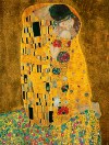 "Поцелуй" - одна из самых известных работ Климта и относится к периоду его творчества, названному "золотым". И это не просто фигуральное выражение - в это время художник много работал с золотым цветом и настоящим листовым сусальным золотом. Отчасти с этим связывают популярность картин того периода.