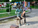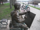На берегу Волхова, на противоположном берегу от Кремля в Великом Новгороде сидит "юный художник". Скульптура была установлена в сентябре 2010 года, ее автор - новгородский скульптор Сергей Гаев.