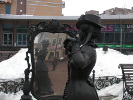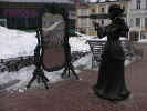 Как и все скульптуры проекта, она - родом из конца XIX века. Но хоть и говорят, что женская натура непостоянна, одно свойство не меняется веками - всегда выглядеть как можно лучше. Поэтому нижегородская "модница" из позапрошлого века ничем не отличается от современных: она также сосредоточенно погружена в процесс "самолюбования", мало обращая внимание на окружающее. Проверьте - вы можете спокойно подойти, сфотографироваться с ней, глядя в то же самое зеркало, а она не обратит на вас абсолютно никакого внимания.