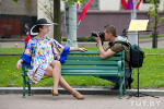 В Михайловском сквере Минска под деревьями уютно устроилась на скамейке шикарная дама. Появилась она здесь 5 мая 1998 года, ее автор - уже многократно упоминавшийся Владимир Жбанов. Другие названия скульптуры - "Незнакомка" (так ее называл сам Жбанов), "Минчанка", некоторые называют ее девушкой легкого поведения, балериной, просто гордячкой.