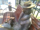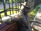 Интересно, что "Любка" имеет пару - недалеко, тоже на скамейке, расположился "Мужик с пивом". Вот такая типичная современная история: мужик с пивом и котом, а дама пока одна и скучает, все ждет, чтобы на нее обратили внимание. Или, на худой конец, угостили папироской...