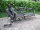 Очень похожая "Дама" живет в Хабаровске, а вообще "Дам на скамейке" довольно много (часть из них представлена в фотогалерее). А у меня в коллекции есть еще несколько памятников на эту тему - "Незнакомка" в Минске и "Дама с собачкой" в Одинцово.