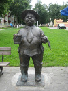 Тогда же у входа на стадион появились Вася и Любка. Хотя трудно представить более противоречивых персонажей рядом со спортивным стадионом: дама с папиросным мундштуком и мужчина с кружкой пива. Но в симпатичности и оригинальности им никак не откажешь.