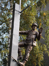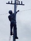 Памятников электрикам и электромонтерам довольно много (см.фотогалерею). В основном, что естественно, они тоже ползают по столбам.