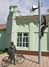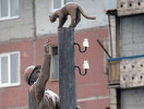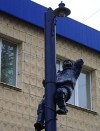 В Великом Новгороде в сквере напротив главного корпуса Новгородского государственного университета на Большой Санкт-Петербургской улице расположена шутливая композиция "Электромонтер" (другие ее названия - "Электрик, снимающий кошку со столба", "Глаза в глаза"): электрик, взбирающийся вверх по столбу и протягивающий руку к перепуганой кошке, которая вскарабкалась на самый верх столба, а слезть с него не может.