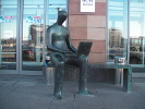 В Петербурге на Аптекарской набережной, около входа в бизнес-центра "Авеню" сидит бронзовый "менеджер". Ему как будто надоело сидеть в офисе и он решил выйти на улицу и поработать на свежем воздухе. Благо, что современные виды связи это позволяют, а ноутбук всегда под рукой.
