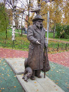 В Архангельске, в месте пересечения старейшей улицы города - проспекта Чумбарова-Лучинского, - и улицы Поморской стоит чудаковатого вида добродушный старичок в длинном пальто. Одна рука вытянута вперед как будто для рукопожатия, в другой - авоська с рыбой. О ноги мужичка трется кошка в надежде поживиться рыбой, а на шляпу ему присела чайка, по-видимому с той же целью.